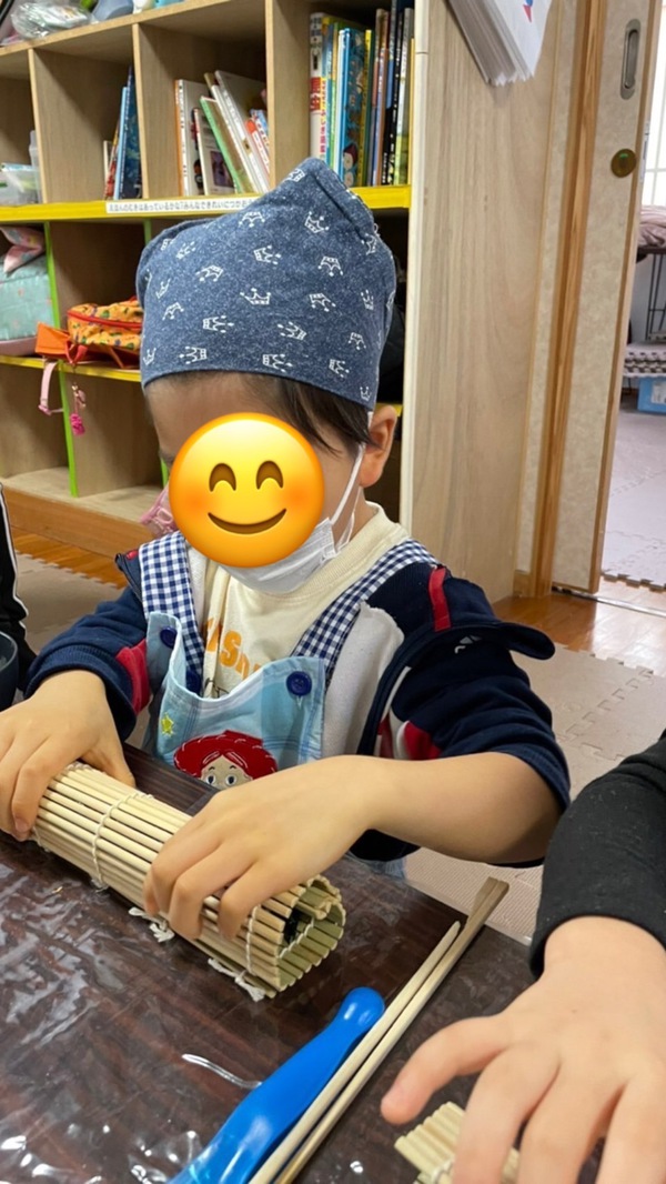 具材を入れて巻き巻き、、、難しいなぁ、、!!
