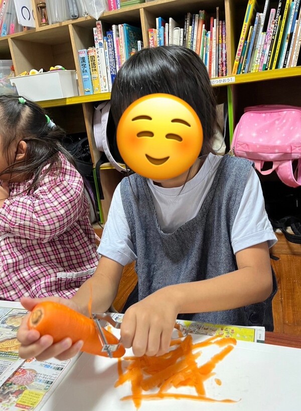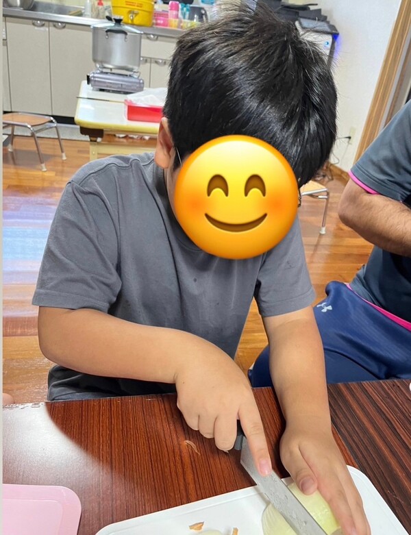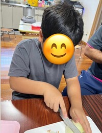 慎重に切っています‼︎(猫の手になっていないですね・・・)