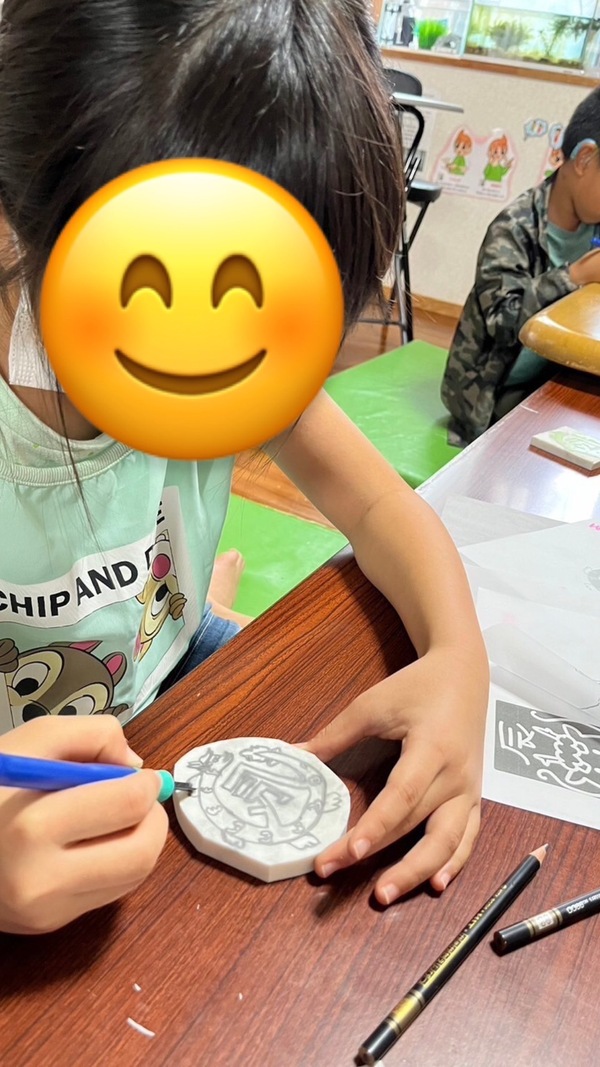 下書きを写し、どこを掘るのか考えながら掘っています。
