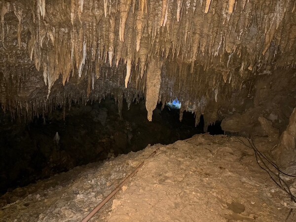 薄暗い鍾乳洞の中も